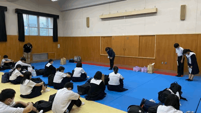 学校に戻ってきて、帰校式をおこないました。