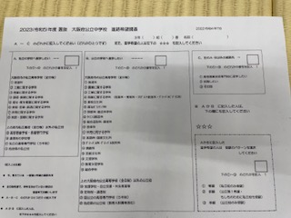 先日、保護者向けに実施しましたが、今日は生徒向けに、進路希望調査の書き方など説明しました。