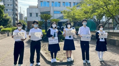 時を遡って、後期生徒会役員に立候補する人たちが、毎朝、正門に立ち、応援を呼びかけています。