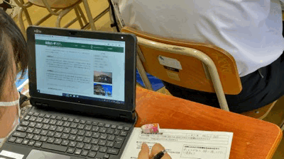 これはどこにあったんだろう? 端末を使って、それぞれが調べています。