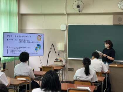 養護教諭よりアンケートの結果を含め、ネットやスマホ使用に関する説明がありました。
