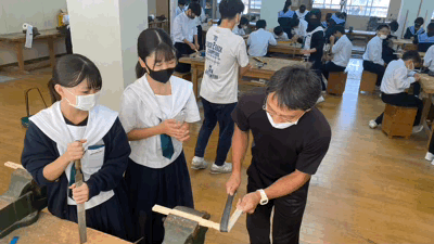 技術室にて。工夫しながら、それぞれ作品作りに励んでいます。