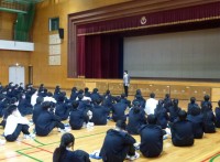3年生では進路学習の1つとして、面接の受け方を学習しました。クラスメイトの前で緊張しながらも面接練習を行いました。
