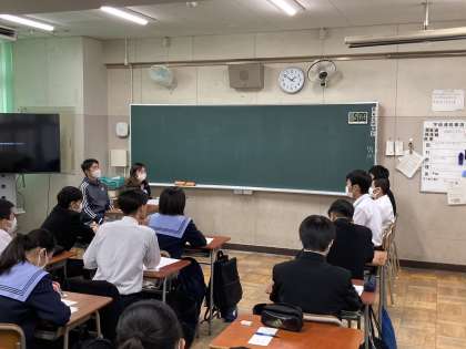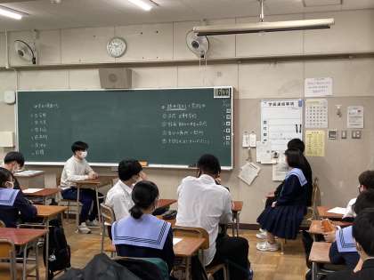 3年生では進路学習の1つとして、面接の受け方を学習しました。クラスメイトの前で緊張しながらも面接練習を行いました。