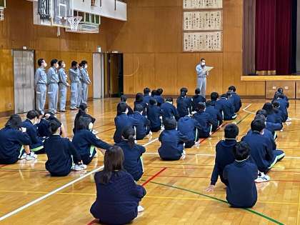 体験前に学校長と浪速区長の挨拶がありました。また、担当する区役所の方々の紹介もありました。