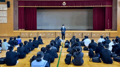 今日は1年生の学年集会です。 今日は、教頭先生のお話です。