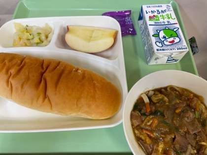 コッペパン、牛乳、カレーうどん、白菜のおひたし、りんごでした。