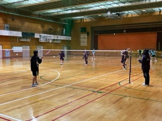 体育館ではバスケットボール部とバドミントン部が活動していました。