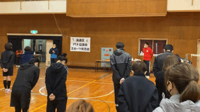 木津中学校にて、PTAの交流会。本校からはバドミントン部の藤井先生も参戦!さすが!