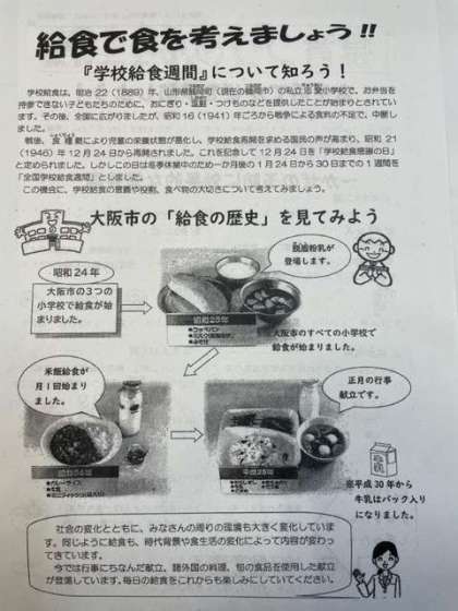 1月24日から本日1月30日までの1週間を全国学校給食習慣としています。給食の意義や役割、食べ物の大切さについて考えてみましょう!
