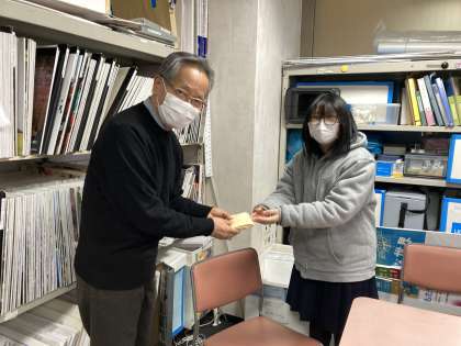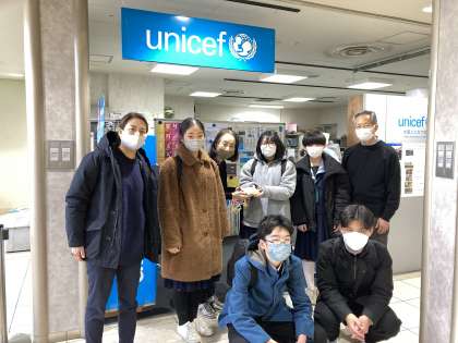 みなさんにご協力いただいたユニセフ募金を、生徒会メンバーで寄付しに行きました。