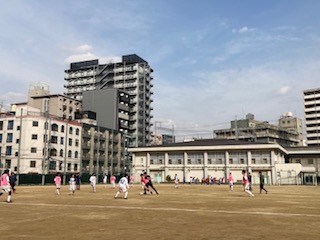 今宮中で新東淀、常翔学園中と練習試合です! 写真は先生?OBチームと対戦中です。