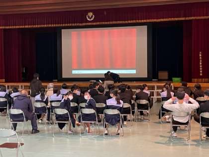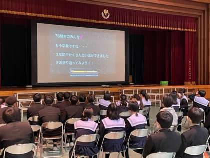 卒業式のリハーサルを終え、 3年間の思い出ムービーを鑑賞しています。