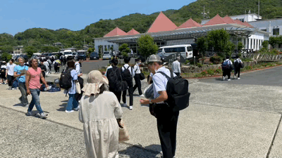 「お荷物、お持ちしましょうか?」と本校生徒。