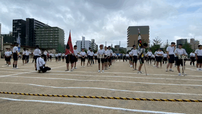 生徒入場、吹奏楽部による校歌演奏に始まり、体育大会が始まりました!