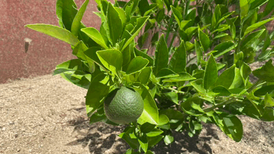 敷地内に植えてあるミカンの木。 ようやく実をつけ、ここまでの大きさになりました。