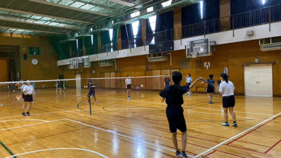 体育館では、バドミントン部、女子バスケットボール部が練習に励んでいます。