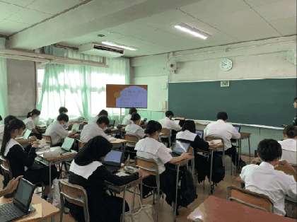 枕草子を扱っている授業の様子です。 タブレットを使いながらの授業となっています。