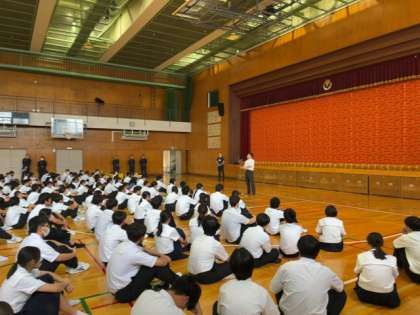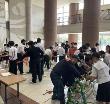 本日5,6時間目に、浪速区役所主導のもと、浪速消防署、浪速区社会福祉協議会、難波中学校が合同で防災訓練を行いました。
