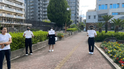 後期生徒会役員・学年代表の立候補者が、毎朝、玄関であいさつ運動をしてくれています。