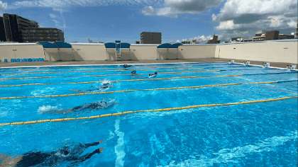 今日は、3年生女子の最後の水泳の授業でした。3年間で四泳法に挑戦しました。最終日、天気も良く最後にみんなでバタフライを泳ぎました。