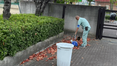 校庭の桜の葉も色づき、そのほとんどが枯れ落ちる季節となりました。 管理作業員さん、毎日、ありがとうございます。