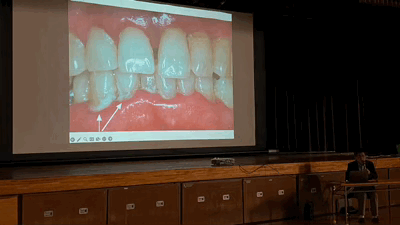 本日は、学校歯科医の長谷川先生にお越しいただき、むし歯や歯肉炎・歯周病、矯正やホワイトニング、タバコの害について、ご講演いただきました。