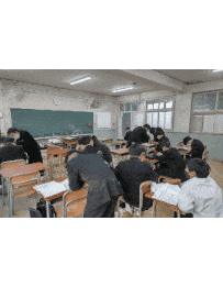 放課後の学習会に多くの生徒が参加してくれました。予想問題を出しあったり、問題を教えあったりして、活気のある学習会になりました。