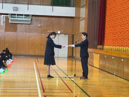 女子バスケットボール部の表彰を行いました。