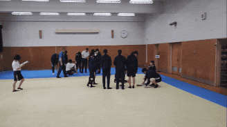 新体力テストの長座体前屈、握力にクラスで協力して取り組むことができました。