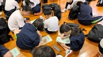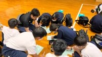 館内テーリングの前に、2日目に行うコースターづくりの材料となる絵を描いてます。