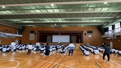 浪速警察署の方にきていただき、交通ルールと友人や見知らぬ人とのSNSトラブルについて話をしていただきました。