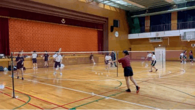 ダブルスの練習をしていました。私はこんなに上手くラリーはできません。