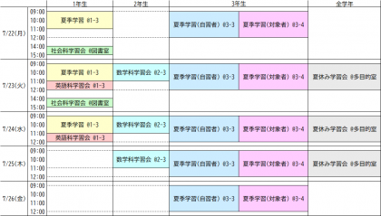 図に示すとおり、学習会・補習を行います。行事予定(Googleカレンダー)にも掲載していますので、ぜひ参加してください。