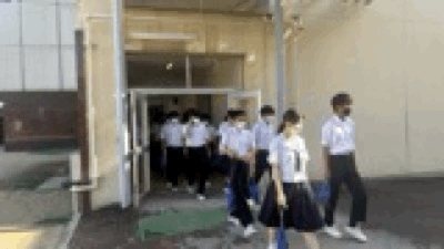 At today's school-wide meeting, there was an introduction of educational trainees and an explanation of the announcement of the second semester of the student council officer election.