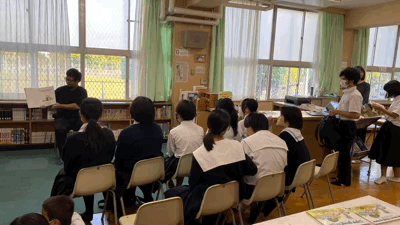 中尾先生による「おおきなかぶ」の読み聞かせでした。文化委員会でも絵本読み聞かせ会を来月から行います。