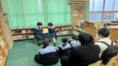 放課後、3年2組の生徒による絵本の読み聞かせをしました。とても聞きやすく上手に読んでくれていました。