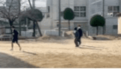 3rd grade boys' physical education time runs for 10 minutes. The head of the grade is also running side by side and cheering.