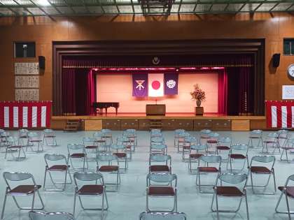 本日は、難波中学校第79回の入学式です。 会場の準備を整えて、新入生を迎えるばかりです。