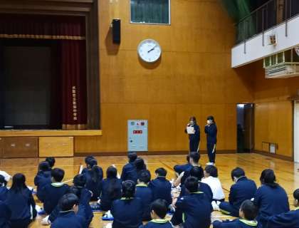 本日の午前は、学年集会や各種測定・学級びらきでした。午後は、体育館で1年生に向けて部活動紹介をおこないました。