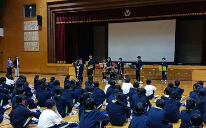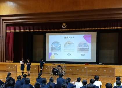 生徒会役員による司会で、進行されており、吹奏楽部による演奏と美術部の活動紹介です。