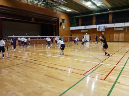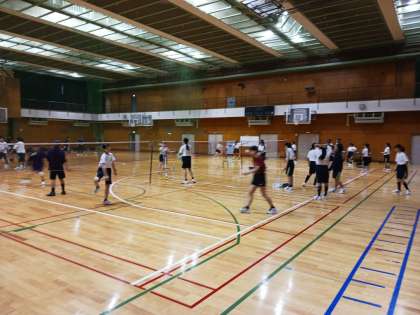 フットワークの基礎練習で体力を作り、指導員から出されたシャトルを打ち返します。