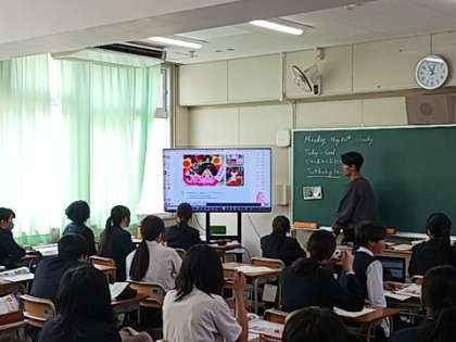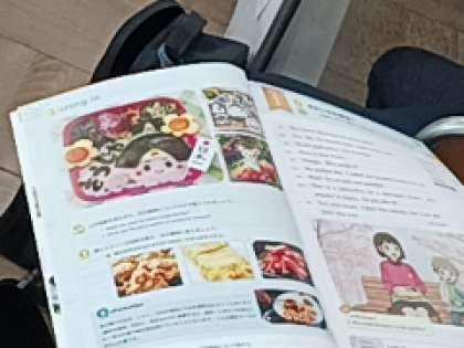 教科書の例文を読んで、その会話をペア学習で行っています。