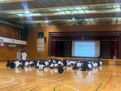 講師の方に来ていただき、職業についてお話していただきました。目標をもつこと、挑戦すること、考えること、諦めないことが大切だと学ぶことができました。