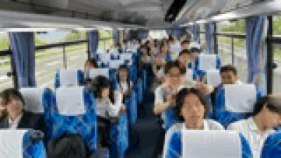 伊方町への民泊へ向かうバスの様子です。