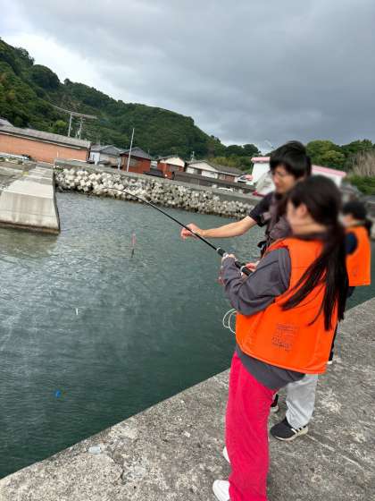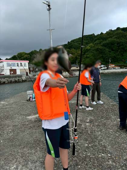防波堤釣り女子チームの様子です。