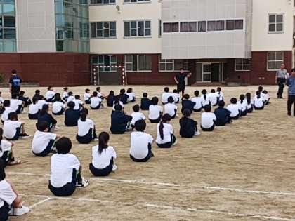 体育委員さんの呼びかけに、クラスが大きな声で応えています。