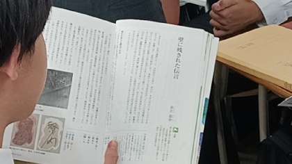 「壁に残された伝言」について、互いに音読をしながら理解を深めます。