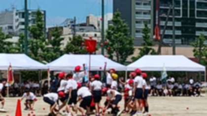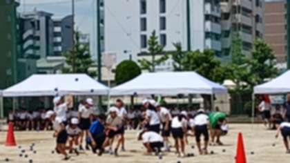 校区小学校の6年生を迎えて、中学生とともに玉入れを行います。