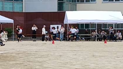各クラスの代表、男女1名でチームを作りバトンを繋ぎます。